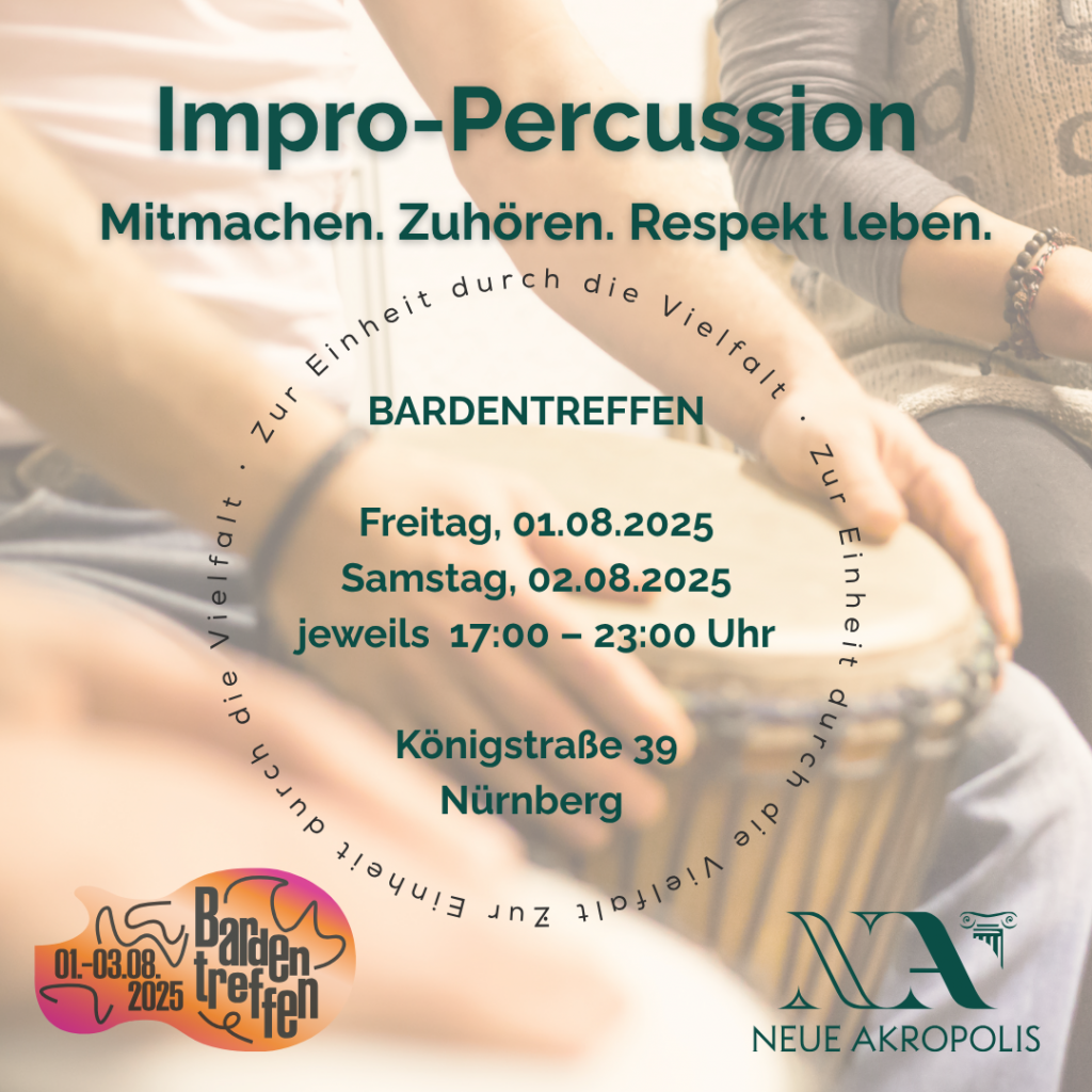 In der Königstraße wird im Rahmen des Bardentreffen „getrommel für die Philosophie“: Impro-Percussion für Alle nach dem Motto „Spiele deinen Rythmus im Takt der Gemeinschaft“.